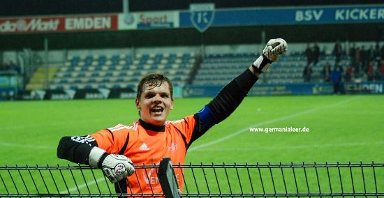 Es sollte ein schöner Fußball-Abend für die Ostfriesen aus Emden werden, doch am Ende jubelten die Germanen aus Leer. Den zahlreich erschienenen Zuschauern wurde ein klasse Spiel geboten. Während die Leeraner ihre Möglichkeiten nutzten, scheiterten die Emder immer wieder am gut aufgelegten Germanen-Keeper M. Lücking. Mit zahlreichen Paraden brachte der VfL-Torwart die einstig, blaue Macht regelrecht zur Verzweiflung. Für die Germanen nichts neues, denn ihre Nummer 1 ist von Spiel zu Spiel ein sicherer Rückhalt mit konstanten Leistungen und für die Germanen-Fans eine 100%-Identifikations-Figur. Während die Ostfriesen aus Emden nach dem Spiel den Gang in die Kabine antraten, feierten die Germanen mit ihren Fans eine ausgelassene Zaunparty. Von Alex Westerkamp